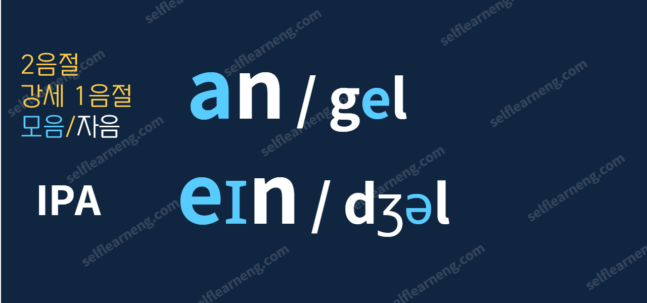 Angel의 경우 원어민 발음은 모두 ['eɪn / dʒəl] 인데 한글은 첫 음절을 '엔'으로 쓰는 좀 특이한 경우입니다.