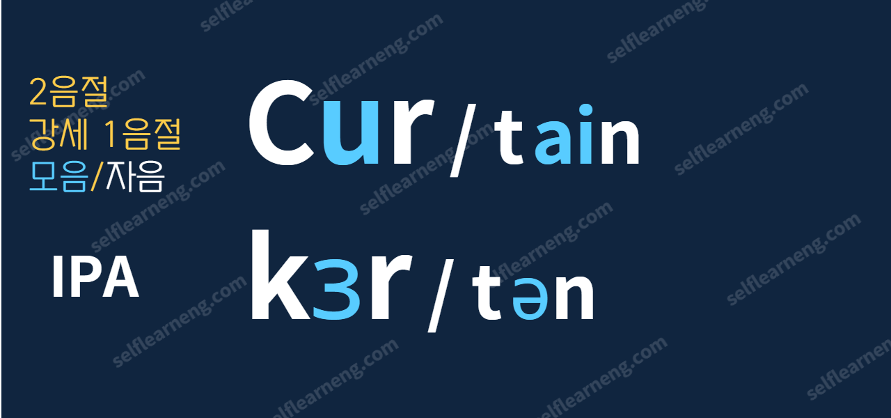 그래서 'r' 발음을 확실히 해주는게 필요한데, curtain의 경우는 발음기호를 보면 첫 모음이 /ɜ/로 되어있어서 자음 /r/과 같은 소리입니다.
